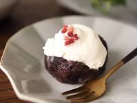 皿の上にローソンの「クリームおはぎ」が置かれている