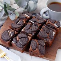 木製のカットボードの上に置かれたオレオブラウニー