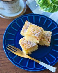 青い器に盛られたホワイトチョコブラウニー