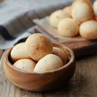 木製ボウルに盛られた切り餅の明太ポンデケージョ