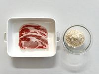 豚ロース肉と「ラク揚げパン粉」が置かれている