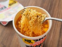 カップヌードル 酸辣湯 ビッグの麺をすくう様子