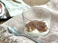 「バンホーテンの腸活ココア」がかかったプレーンヨーグルト