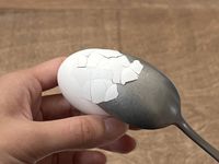 スプーンでゆで卵の殻を叩いている様子