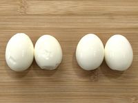 殻を剥いたゆで卵が4個並んでいる