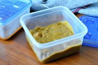 カレーが入ったステンレス容器、琺瑯容器、ガラス容器