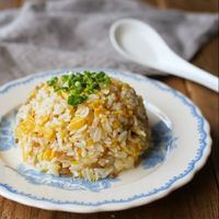 白い丸皿に盛られたチャーハン