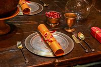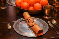 大広間の机の上の料理や飾りつけのアップ