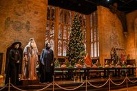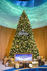 スタジオツアー東京の大広間正面奥のクリスマスツリーと飾り