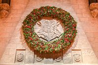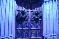 クリスマスリースが飾られたスタジオツアー東京の大広間の扉