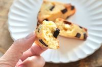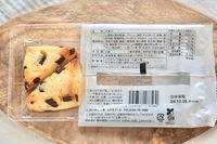 木のカッティングボードにのったチョコチップスコーンの成分表示