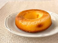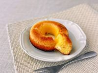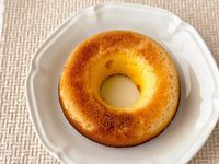 白皿にのった「サックリ食感ベイクドリングチーズケーキ」