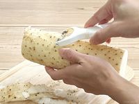 長芋の皮をピーラーでむいている様子