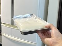 とろろを金属製のバットにのせて冷凍しようとしている様子