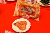 お皿にのったエビとパッケージ