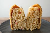 「最強どん兵衛 きつねむすび」を半分に割った様子
