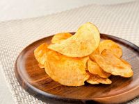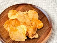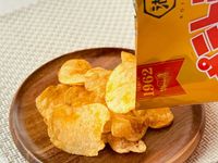 木皿にのった「湖池屋 ポテトチップス金のコンソメ」