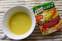 コーンクリーム たっぷりコーンとけこむのパッケージとスープ