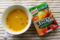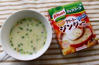 クノールカップスープのきのこのポタージュのパッケージとカップに作ったスープ