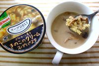 クノール スープ DELI きのこのクリームスープパスタのパッケージとスープ