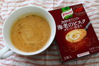 クノール スープ deli エビのビスク クリーミー仕立てのパッケージとスープ