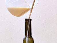 瓶に豆乳をそそいでいる様子