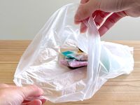 ポリ袋を開けている様子