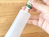 ダイソー「スポンジローラー詰め替えチューブ」にファンデーションを入れている様子
