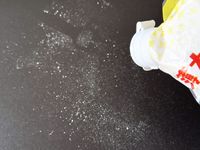 「袋キャップ(ミニ)」を取り付けた小麦粉を出している様子