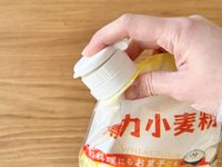 ダイソー「袋キャップ(ミニ)」を取り付けた小麦粉