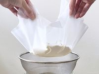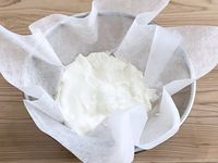 「蒸しシート」でヨーグルトの水切りをしている様子