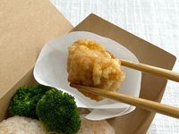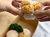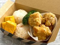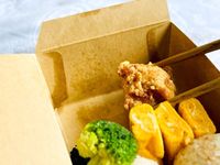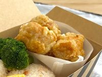 唐揚げやおにぎりなどが入ったランチボックス