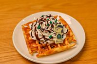 ホイップクリームがのったアメリカンワッフルのアップ