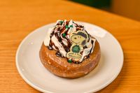 ホイップクリームがのったドーナツのアップ