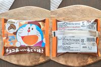 木のカッティングボードにのった映画ドラえもんコラボのチョコどら焼き