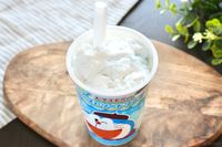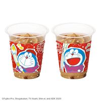 映画ドラえもんの赤いパッケージのコンビニフラッペドリンク