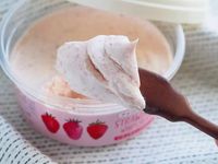皿に「凍らせておいしい 苺ミルクあいす」の中身を出している