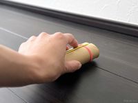 トイレットペーパーの芯で床をこすっている様子