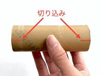 トイレットペーパーの芯を手で持っている様子