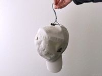 ワイヤーハンガーに帽子をかけている様子