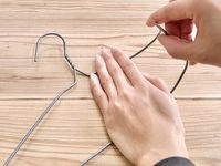 ワイヤーハンガーを折り曲げている様子