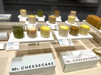 ショーケースに並ぶミスターチーズケーキのチーズケーキや焼き菓子
