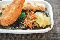 白身魚のフライがのったのり弁当のきんぴらごぼう