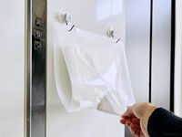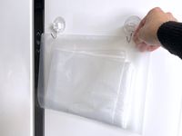 ゴミ袋が入ったクリアファイルをフックにかけている様子