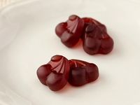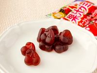 白皿にのった「果汁グミダークチェリーミックス」