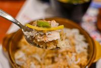 鯛めしをスプーンですくっているところ