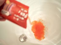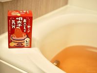 やまや「おふろで明太子気分入浴料」をお湯に入れている