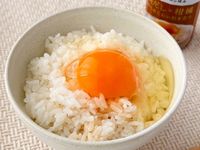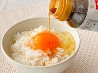 たまごかけごはんに「味ぽんforTKG」をかけている様子