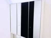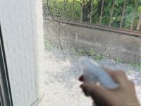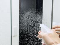 洗面台の鏡に気の抜けた炭酸水を吹きかけている様子