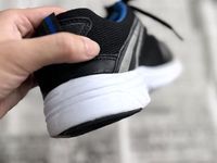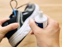 歯磨き粉をつけた歯ブラシでスニーカーのソールをこすっている様子